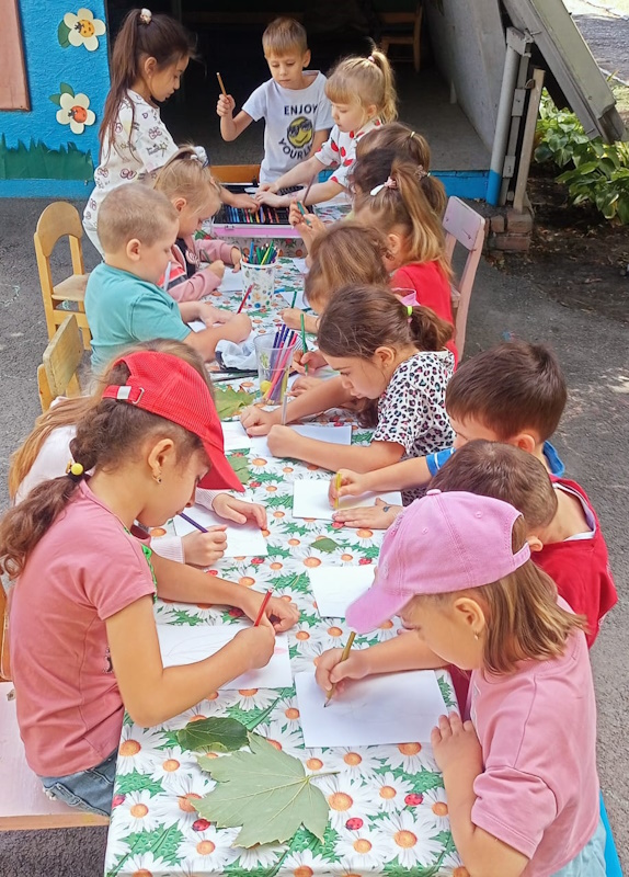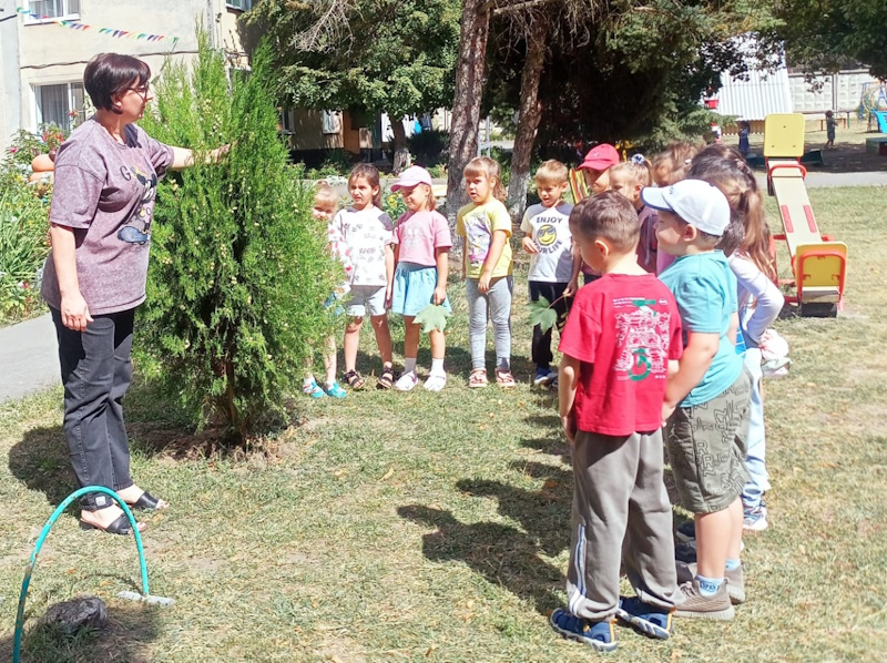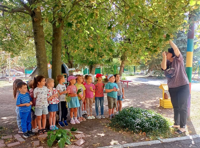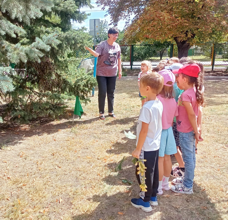 Дети наблюдали за явлениями природы в естественных условиях, во всем ее многообразии, беседовали о растениях, животных, о труде человека осенью. Рассматривали лиственные и хвойные деревья. Собрав листья, рассматривали у кого какой получился букет. После наблюдений за осенними деревьями на участке детского сада дети нарисовали осенние листья.