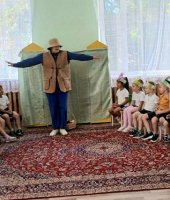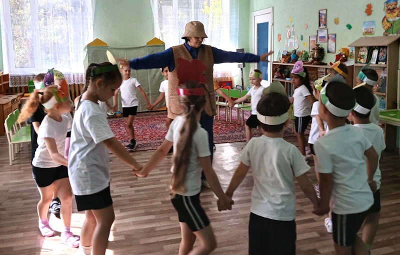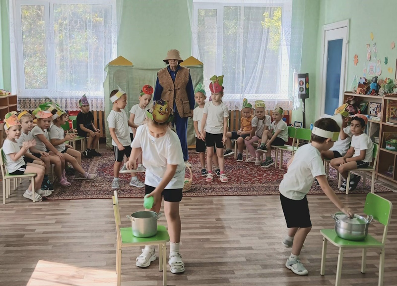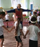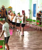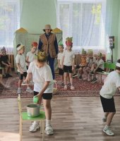 В рамках тематической недели: «Осень. Осенние дары природы. Труд людей осенью» в старшей группе «Ягодки» я провела развлечение «Веселый огород». Ребята отправились в путешествие на огород, где их встретило веселое Пугало (эту роль выполнила я) и предложило пройти ряд испытаний. Сначала Пугало загадало «загадки с грядки» и попросило рассказать детей, что такое огород и как человек использует овощные культуры. Затем дошколята проявили выносливость и быстроту в эстафетах «Перенеси арбузы», «Сажаем горох», «Сварим вкусный борщ», «Сбор урожая». Превратившись в овощей ребята поиграли в музыкальную игру «Есть у нас огород». Завершилось развлечение веселой игрой «Пугало».