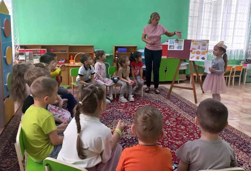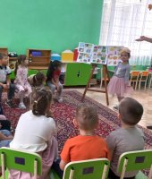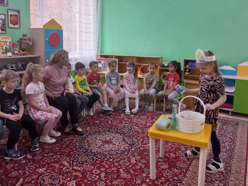Под веселую музыку «Паровозик Букашка» мальчики и девочки отправились в страну здоровья, там их ждали Витаминка (в роли воспитанница Полина Б.) и Чистюля (роль исполнила воспитанница Ангелина К.). Вместе с ребятами они играли в игры: «Собери витаминки», «Полезные и вредные продукты», «Да, нет», «Назови предмет личной гигиены». Витаминка показала детям, в каких продуктах содержатся витамины, вместе с Чистюлей ребята закрепили знания предметов гигиены, провели опыт с носовым платком. В веселой игровой обстановке воспитанники закрепили полученные ранее знания.