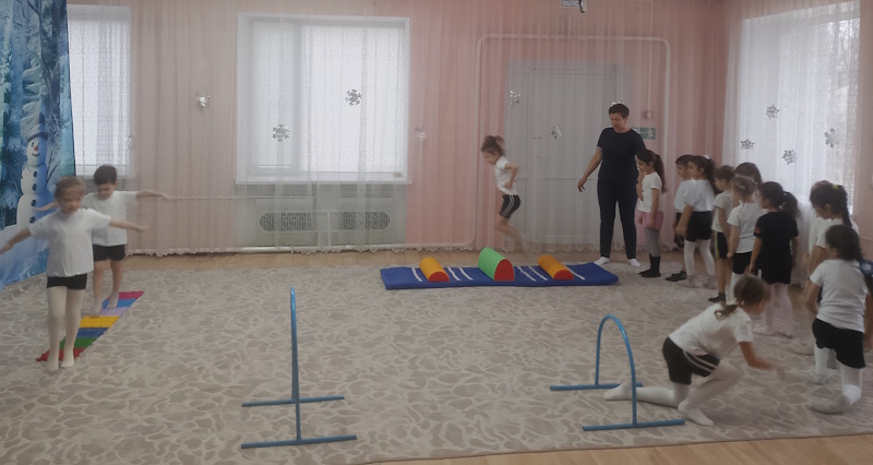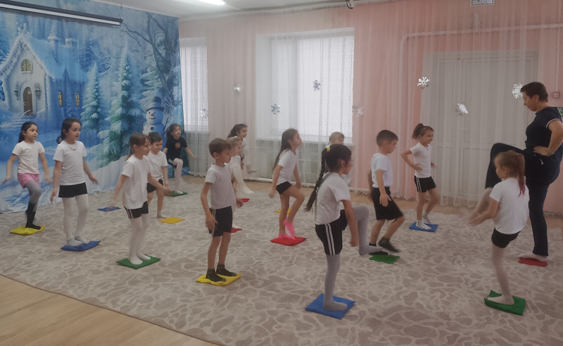 19 декабря было проведено занятие в подготовительной группе «Непоседы» по физической культуре «Быть здоровыми хотим!» Занятие началось с построения. Использовались различные виды ходьбы, бега, которые проводились поточным способом и активизировали деятельность центральной нервной системы и внимание детей. Эти упражнения помогли подготовить опорно-двигательный аппарат к выполнению упражнений основной части образовательной деятельности.