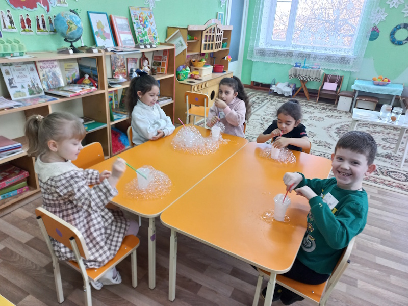 В нашем детском саду прошла тематическая неделя «Любопытные почемучки. Опыты и эксперименты» целью, которой было привлечь внимание детей к такому виду деятельности как экспериментирование; формированию умений рассуждать, анализировать, делать выводы. В подготовительной группе «Непоседы» были проведены различные опыты и эксперименты: «Свойство пресной и соленой воды», «Мыльные пузыри», а эксперимент «Вулкан» вызвал бурю эмоций, за счёт лимонной кислоты и соды происходит реакция и образуется пена. Были проведены познавательные беседы с воспитанниками о значении воды, воздуха в жизни человека и природы. Эта неделя для ребят прошла интересно и познавательно.