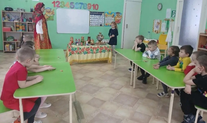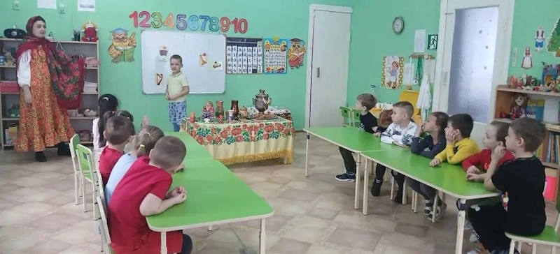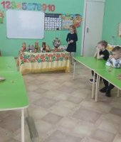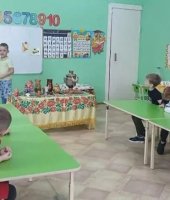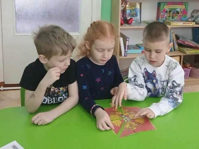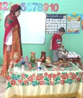 В старшей группе «Ягодки» я провела интеллектуальную викторину «Моя Родина – Россия!». Цель этого мероприятия: обобщить и закрепить знания детей о России, её символике, культуре, природе и традициях. В гости к детям пришла Хозяйка одетая в русский костюм (эту роль выполнила я) и предложила выполнить задания викторины. Сначала дошколята разделились на две команды: «Березка» и «Балалайка» и дружно стали выполнять задания. Ребята называли элементы русского костюма. Затем капитаны каждой команды находили картинки с символами России и показывали детям. Потом хозяйка предложила сложное музыкальное задание, где дошколята должны были определить музыкальный инструмент звучащий в произведении: балалайку, гармошку, гусли или губную гармошку. Детям очень понравились звуковые загадки, они угадывали животных и птиц, которые живут в России. Также ребята быстро собрали российский герб из пазлов. На столе у хозяйки были предметы народных промыслов. Они должны были по узору определить название росписи.