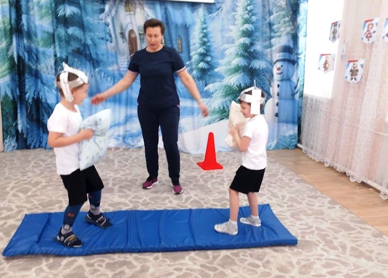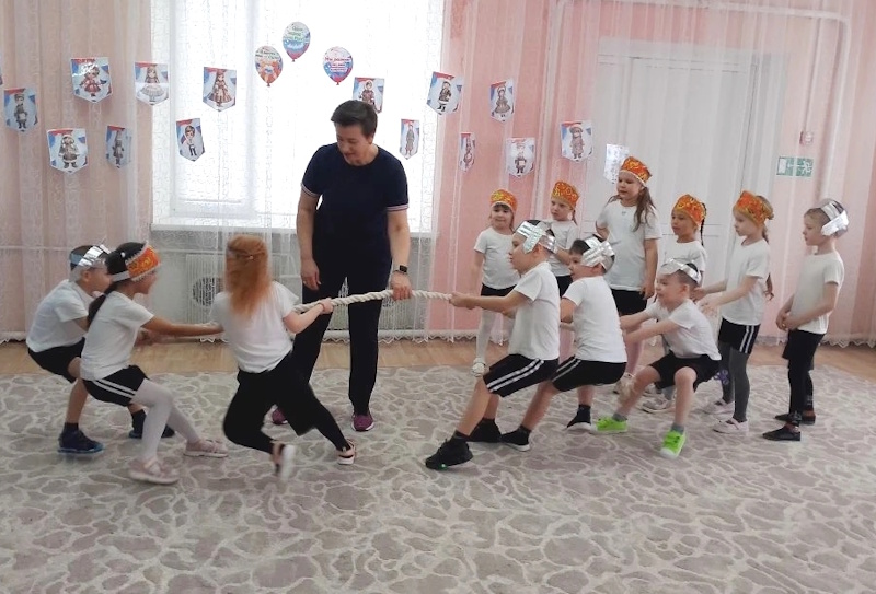 Прозвучала патриотическая песня, задавав боевой настрой. Ребята, поделившись на две дружины продемонстрировали свою силу, ловкость и командный дух участвуя в народных играх: Аварская народная игра «Подними платок», Русская народная «Гори – гори ясно», Калмыкская народная игра «Загони отару» и др. и различных эстафетах: «Бой подушками», «Скачки», «Перетягивание каната», «Силачи». Каждое задание требовало от юных богатырей и девиц-красавиц не только физической силы, но и смекалки, ловкости и умения работать в команде.