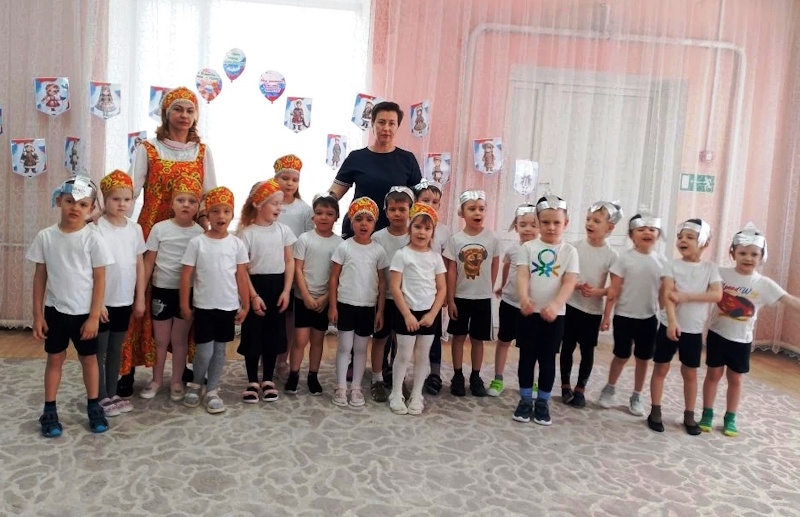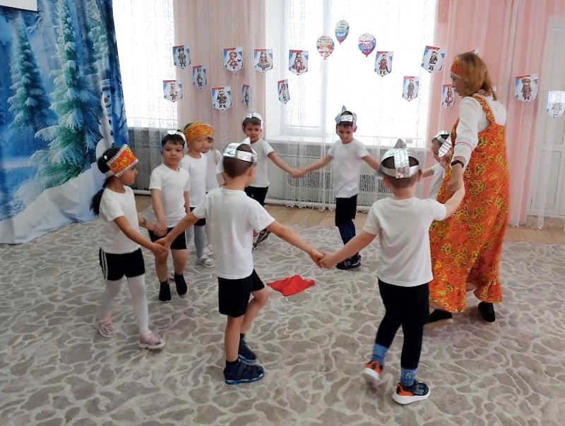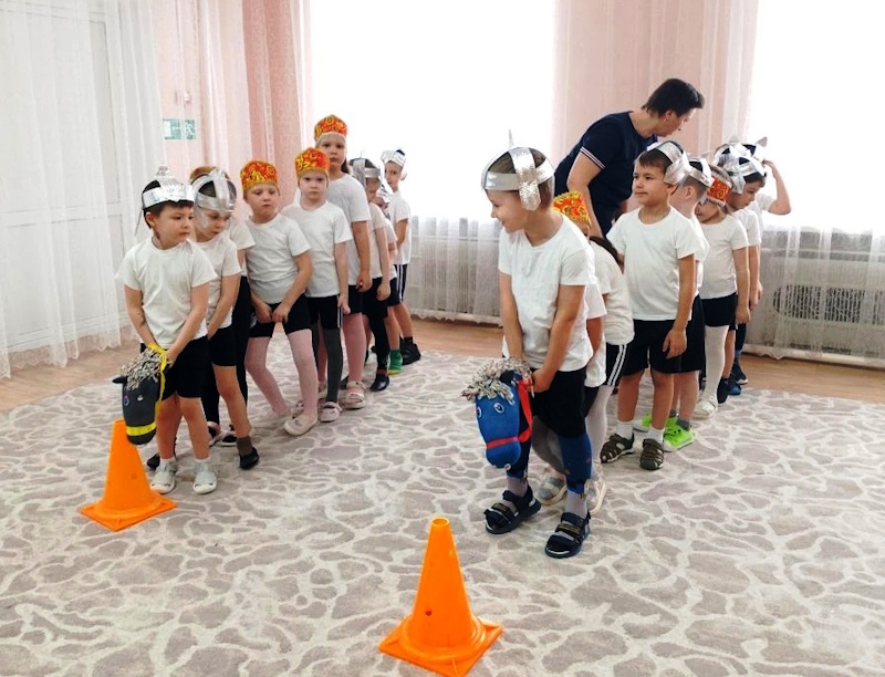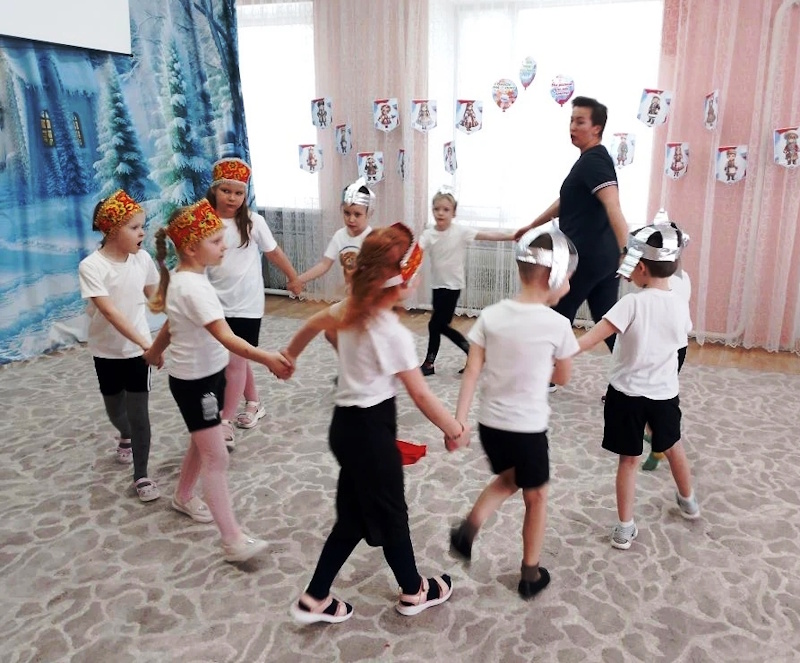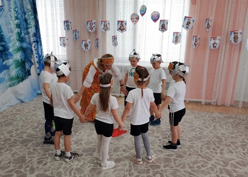 В старшей группе «Ягодки» состоялся яркий и запоминающийся спортивный праздник «Богатырская сила», приуроченный к «Году единства народов России». Праздник начался с торжественного построения. Поприветствовала ребят гостья – Василиса премудрая из самых настоящих русских сказок (в роли воспитатель Л.М. Агафонова). Она услышала, что у ребят пробуждается богатырская сила и решила проверить какие они смелые и дружные, ведь единство – это когда все вместе плечом к плечу, помогают друг другу. Василиса рассказала о богатырях, которые стояли на стаже Руси и о единстве всех народов при защитите своей земли.