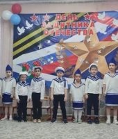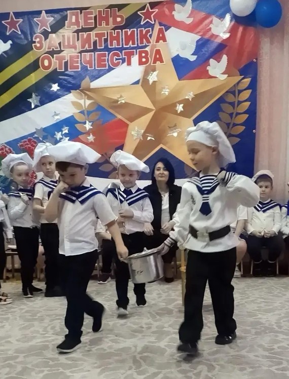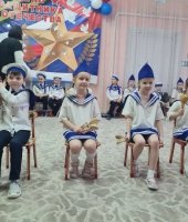 В старшей группе «Ягодки» прошел праздник «Как кот Матроскин на флот служить пошел» посвященный дню Защитника Отечества. К этому празднику ребята подготовились основательно: выучили стихи, разучили песни и танцы, приготовили для пап подарки. Вот долгожданный день настал. В зале собралось много гостей. Все дошколята одели морскую форму. На праздник к ребятам пришел кот Матроскин и предложил пройти «Морскую подготовку» в эстафетах: «Свистать всех наверх!», «Рыбалка для матроса», «Срочное донесение», «Спасательный круг», «Не урони погоны». В честь успешной подготовки всем детям присвоили звание «Почётный матрос Простаквашинского флота»!» На нашем празднике прозвучали песни: «Поздравляем пап и дедушек», «Приуныли казаки». Девочки исполнили веселые частушки. Также гости увидели веселые танцы: «Юные моряки», «Умелые поварята». Затем ансамбль ложкарей порадовал всех музыкальным номером «Яблочко». Финалом праздника стала танцевальная композиция «Вместе с папой» и вручение подарков виновникам торжества.