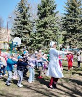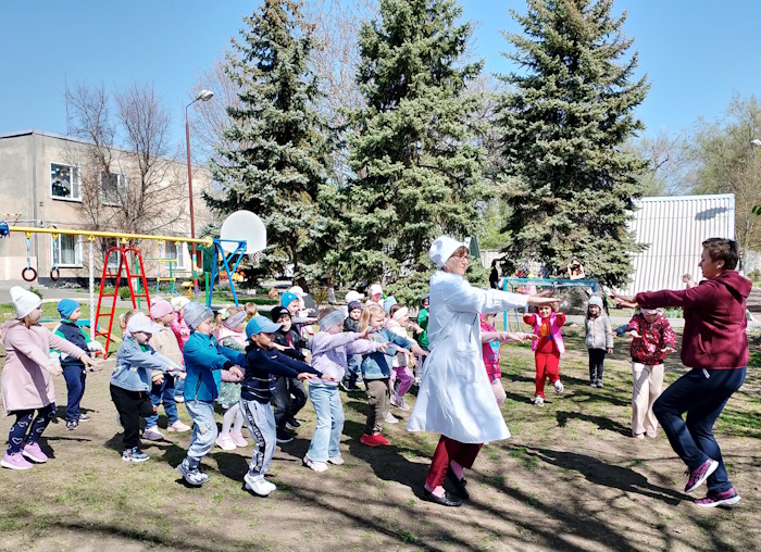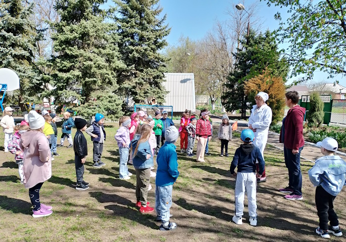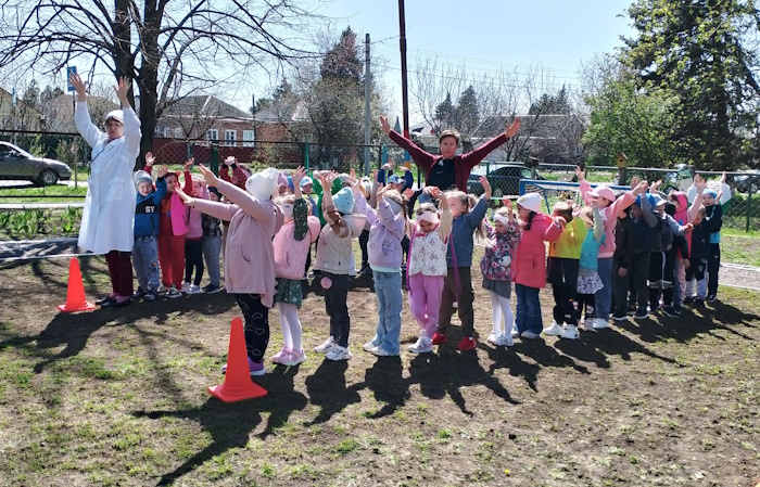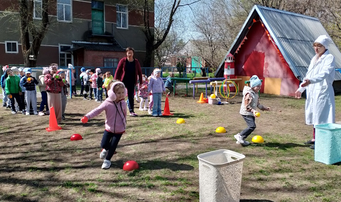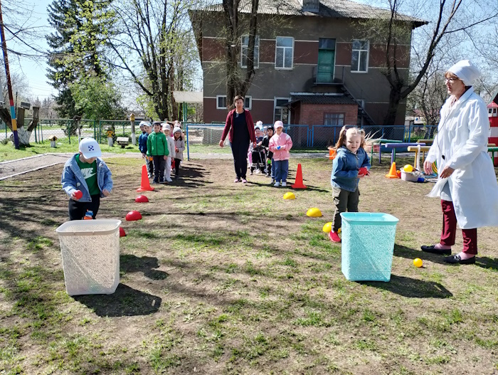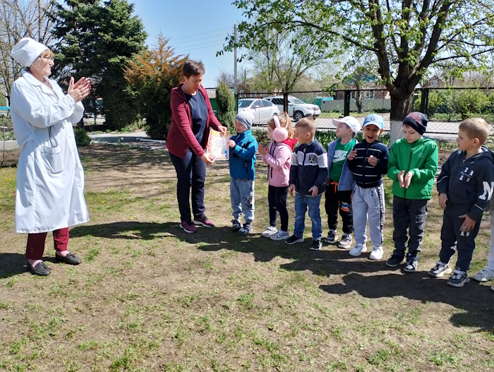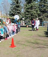 7 апреля отмечался Всемирный день здоровья. В нашем детском саду мы с ребятами старших групп «Капельки» и «Ромашка» провели весёлые старты «В здоровом теле – здоровый дух». К детям приходил доктор Пилюлькин (в роли воспитатель Локоть Н.Л.). Он поздравил ребят с днём здоровья и рассказал о правилах здорового питания, о важности занятий спортом для человека. Доктор Пилюлькин предложил ребятам доказать, что они любят заниматься спортом. Команды ребят из старших групп участвовали в эстафетах: «Удержи равновесие», «Витаминки», «Попади в цель», «Пройди и не урони», «Полоса препятствий», «Перетягивание каната». Участники лихо преодолевали препятствия, показали свои умения в прыгучести, ловкости, смекалке и доказали, что они любят спорт. Доктор Пилюлькин вручил командам грамоты.