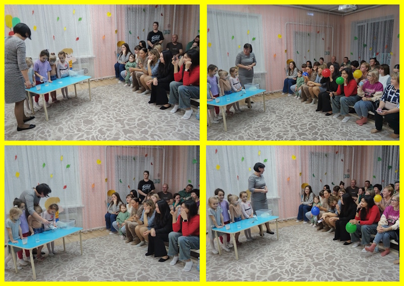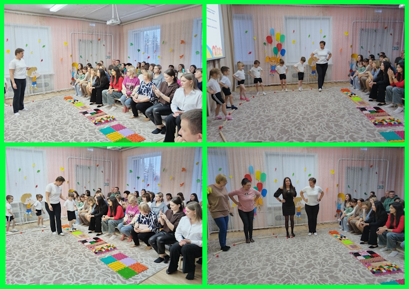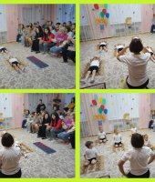 Инструктор по ФК Улевская Н.Г. представила презентацию проведения утренней гимнастики в группах, рассказала о профилактике плоскостопия и с воспитанниками старшей группы наглядно продемонстрировали выполнение упражнений. С удовольствием родители повторили упражнения. Гимнастику пробуждения «Котята» показали воспитанники средней группы с воспитателем Жевтяк Н.Н.. Жизнь наших младших воспитанников используя презентации олсветила воспитатель Сабельник Г.А.. Об экологическом воспитании дошкольников рассказала воспитатель Агафонова Л.М. и с воспитанниками подготовительной группы «Ромашка» усторожили экологический флешмоб. Свои творческие таланты продемонстрировали «Озорные ложкари» - воспитанники средней группы с музыкальным руководителем Ермак Л.В. исполнив русскую народную мелодию. Воспитатель Локоть Н.Л. рассказала родителям о подготовке детей к обучению в школе и с воспитанниками подготовительной группы «Капельки» показала фрагмент занятия по грамоте. Учитель-логопед Гончарова С.С. с воспитанниками подготовительной группы продемонстрировали как развивают мышцы артикуляционного аппарата, развивают мелкую моторику рук с помощью су джок терапии. Девочки старшей группы исполнили задорный танец «Рябиновый чарльстон». Воспитатель Михайлова А.А. с ребятами старшей группы показали, как они умеют проводить опыты и эксперименты. Родители тоже поучаствовали в опыте с воздухом. Команда ЮПИД «Светлячки» с воспитателем Мамай Н.М. исполнили свою песню и частушки о ПДД. Воспитанники средней группы исполнили песенку «Детский сад».