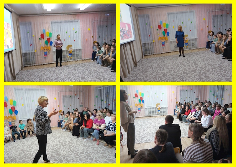 В МБДОУ детском саду № 33 «Светлячок» состоялось 15 ноября общее родительское собрание в нетрадиционной форме на тему «Путешествие в мир детства». В музыкальном зале собрались родители всех возрастных групп. С приветственным словом выступила, заведующий Походеева Е.С. и предложила родителям окунуться в мир детства, в атмосферу нашего детского сада, посмотреть, как протекает наша повседневная жизнь.