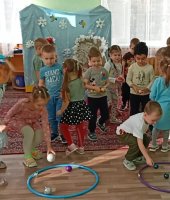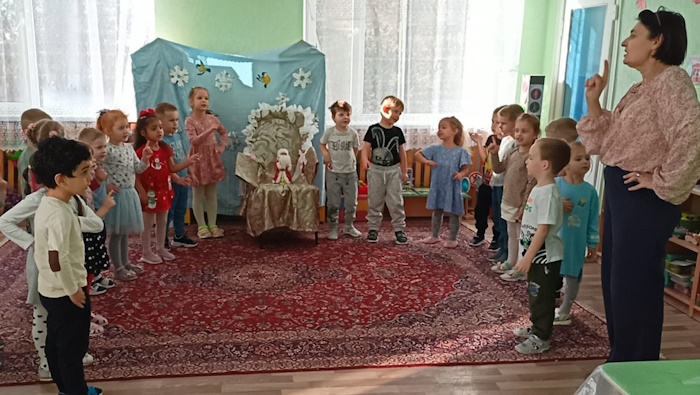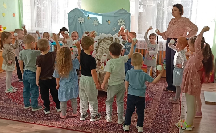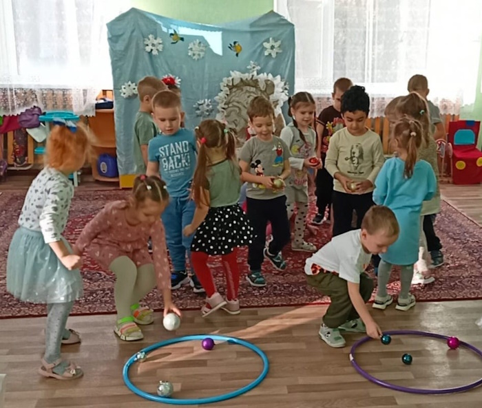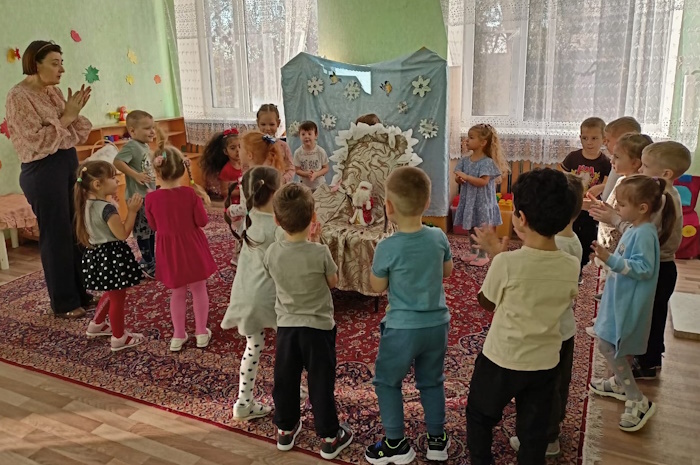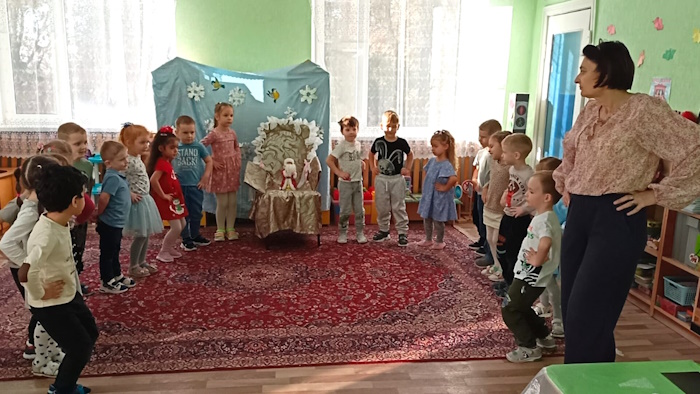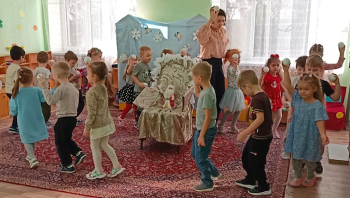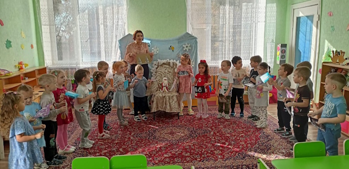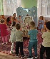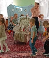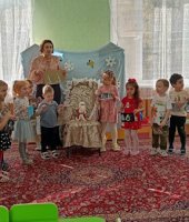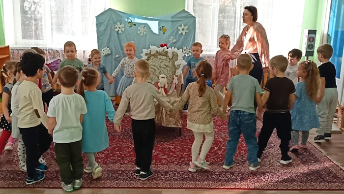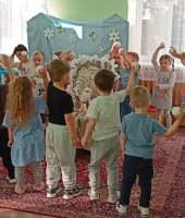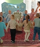 В средней группе «Ягодки» прошло мероприятия посвященное «Дню рождение деда Мороза». В группе ребят встретил игрушечный дед Мороз. По традиции группы дошколята посадили именинника на трон и испекли ему «Каравай». Затем исполнили для виновника торжества песню «Ты пришел к нам в гости, дед Мороз» и весело станцевали танец «Мы снежочки в руки взяли». Потом проявили ловкость и быстроту в играх «Собери елочные игрушки» и «Музыкальная снежинка». Ребята нарисовали открытку и подарили имениннику. Все очень старались красиво изобразить зимний пейзаж.