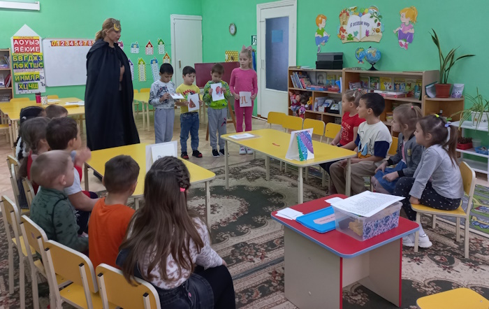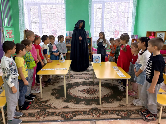 В подготовительной группе «Ромашка» прошла увлекательная командная игра «Счастливый случай». В гости к детям прилетела умная сова (роль взяла на себя) и предложила сыграть в игру «Счастливый случай». Ребята разделились на команды «Умники» и «Знайки».