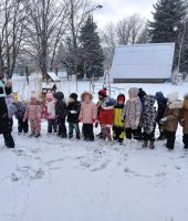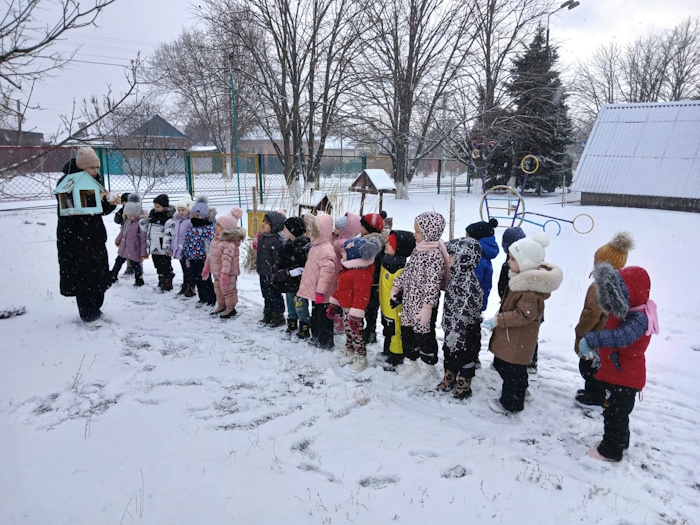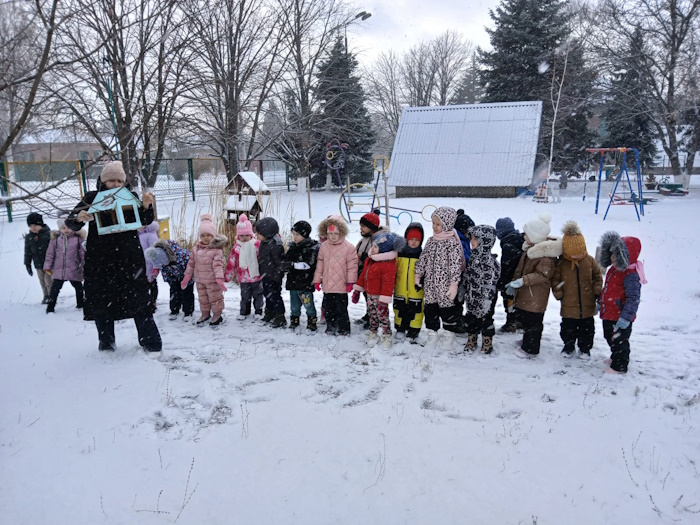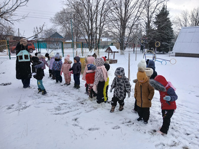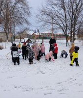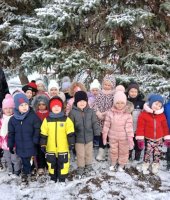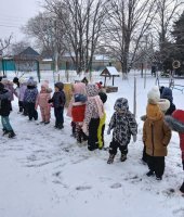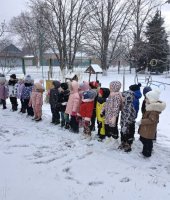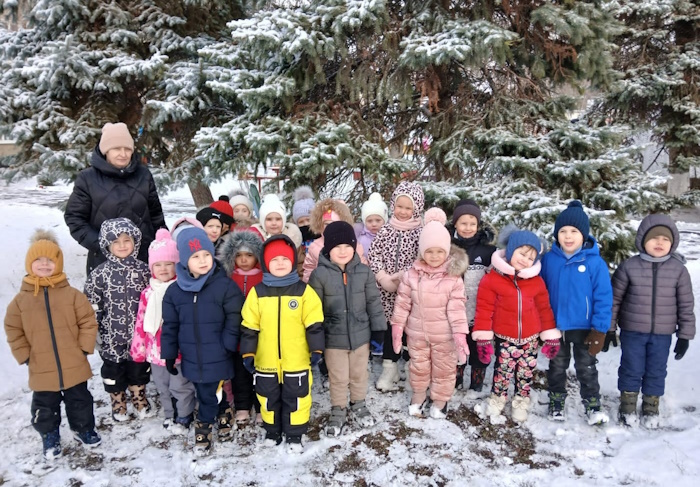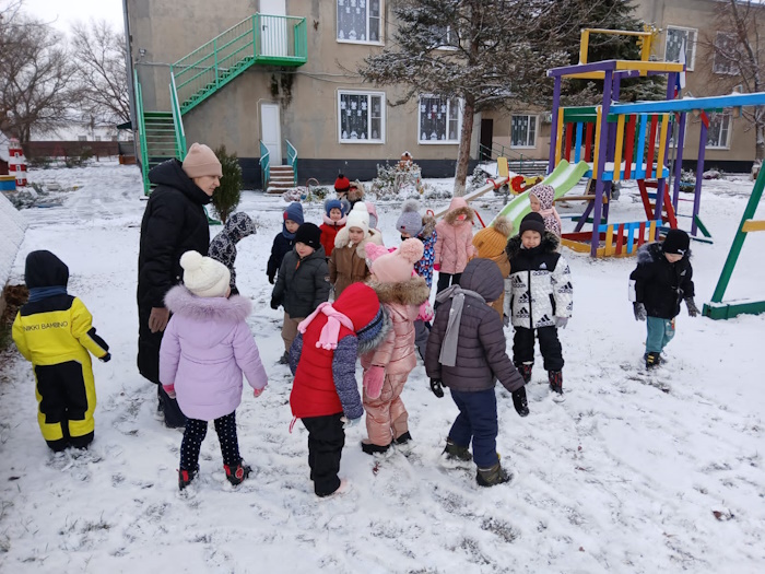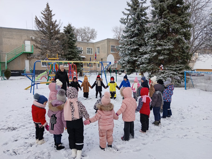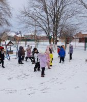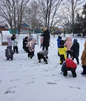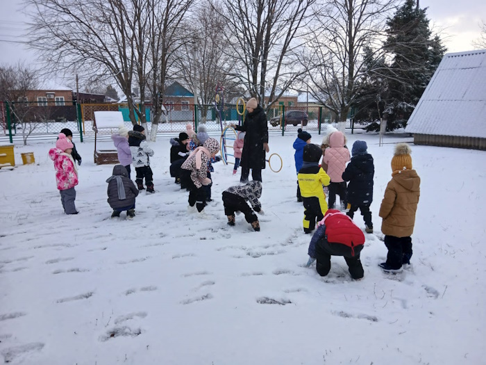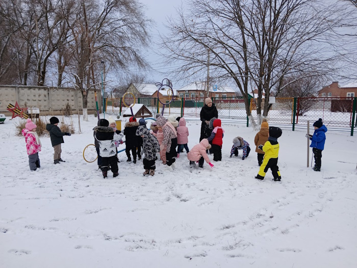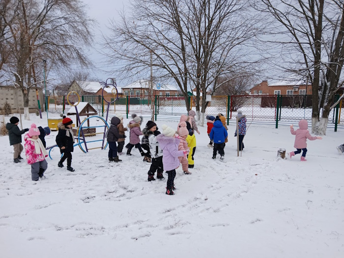 Вот и выпал долгожданный снег. Ребята группы «Ягодки» спешили на зимнюю прогулку. Прогулка началась с наблюдения за зимующими птицами, в процессе наблюдения дети вспомнили название пернатых и их повадки. Дошколята принесли угощение для птиц: крошки хлеба, семечки, зерно. Любовались мы зеленой красавицей одетой в снежный наряд и прочитали ей стихотворение «Елочка». Потом мы рассмотрели снег и повторили его свойства. Ребята с интересом наблюдали превращение снега в теплых ладошках в воду, и как настоящие следопыты на снегу отыскали следы птиц, кошки и собаки. Дошколята с интересом печатали обувью рисунки на снегу. Дети весело играли в подвижные игры: «Попади снежком в цель», «Снежные баталии» «Медведь», показа свою ловкость, быстроту, меткость. Ребята вернулись в группу с румяными щечками, блестящими глазками и отличным настроением.