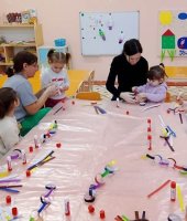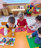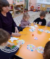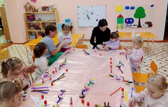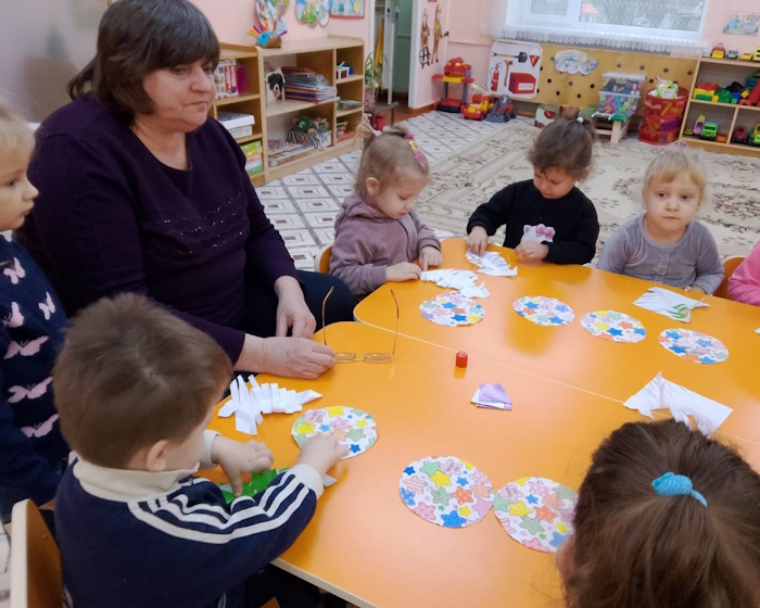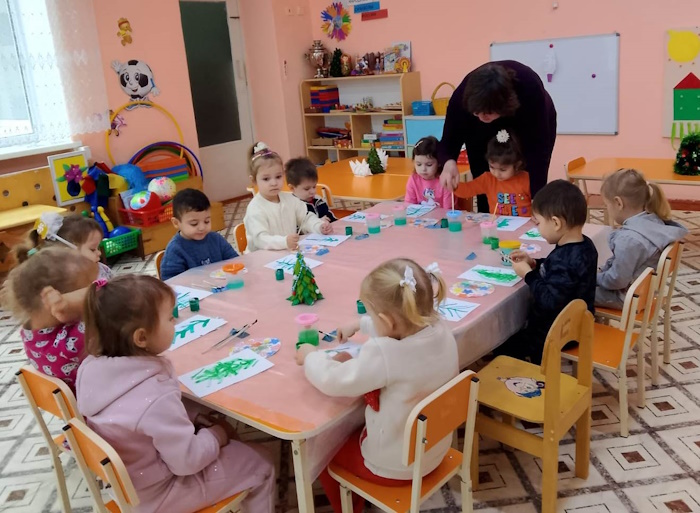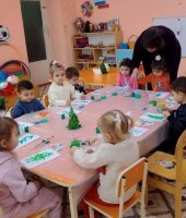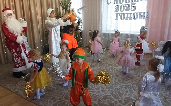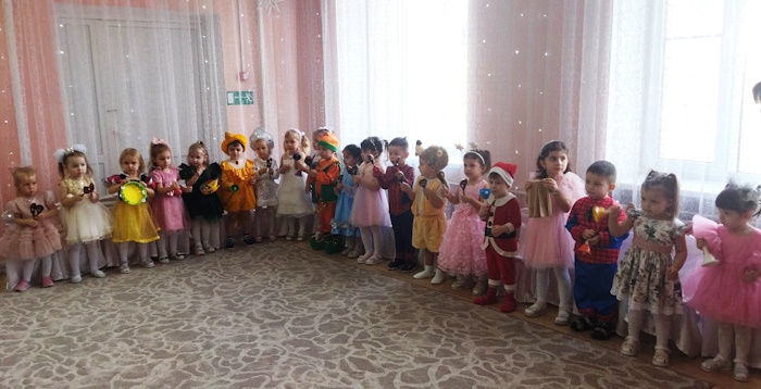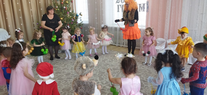 В младшей группе «Звёздочки» в течении долгого времени мы готовились к Новому году. Вместе с малышами мы рисовали новогодние ёлочки, лепили ёлочные украшения. Сказочно украсили окна, беседку на участке. Совместно с родителями изготовили цепочку для украшения ёлочки в группе. Разучивали стихи и песни, водили хороводы. В нашем детском саду проводился конкурс среди возрастных групп: «Ёлочка, красавица», в котором активное участие приняли дети совместно с родителями – изготовив креативные ёлочки. А итогом всей проделанной работы был новогодний утренник: «Лисичка - проказница и огоньки». На праздник наши малыши пришли в нарядных новогодних костюмах и весло, задорно провели время с сказочными героями.