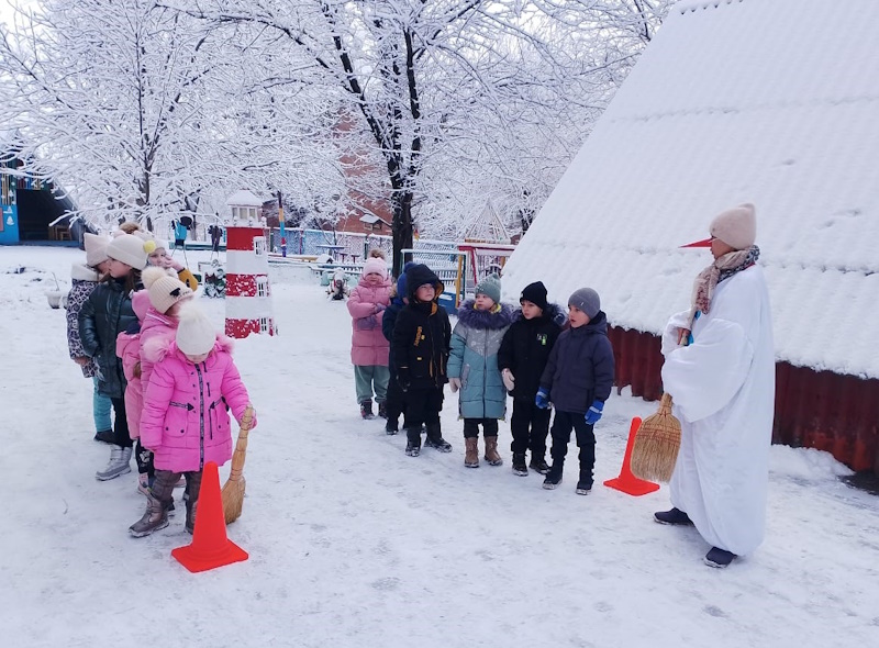 Зима – это лучшее время для детских развлечений и забав. В подготовительной группе «Ромашка» прошло спортивное развлечение «В гостях у Снеговика». Развлечение проходило в несколько этапов: сначала была проведена зажигательная разминка вместе с Снеговиком (в роли воспитатель Агафонова Л.М.), затем были веселые эстафеты: «Пингвины», «Катание на метелке», «Кто больше», «Флажки», «Перетягивание каната». Развлечение было завершено подвижными играми «Заморожу», и «Ровным кругом».