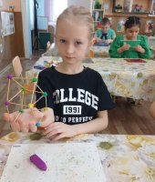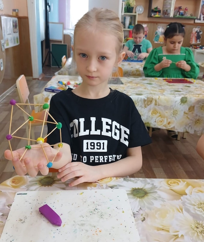 Ребята подготовительной группы «Капельки» с большим удовольствием занимаются 3-D моделированием. С помощью зубочисток (спичек без серы), пластилиновых (пенопластовых) шариков дошколята конструируют геометрические фигуры. Дети очень любят фантазировать, поэтому кроме геометрических фигур может получиться изображение солнца, звезды, домика и многое другое. Из зубочисток (спичек без серы) пластилиновых (пенопластовых) шариков отлично получаются различные модели, создание которых превосходно развивает логику пространственного мышления, мелкую моторику рук, творческие способности детей, воспитывают усидчивость и внимание, а еще это прекрасная психологическая разгрузка.