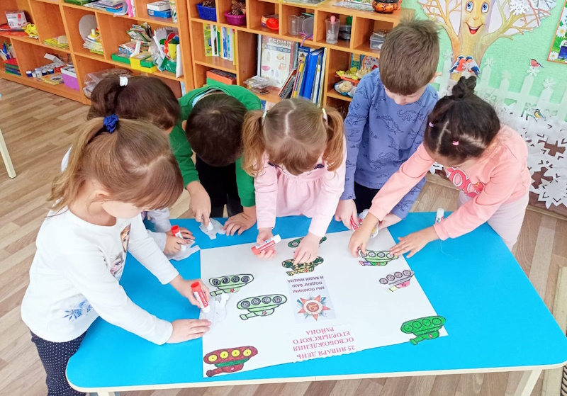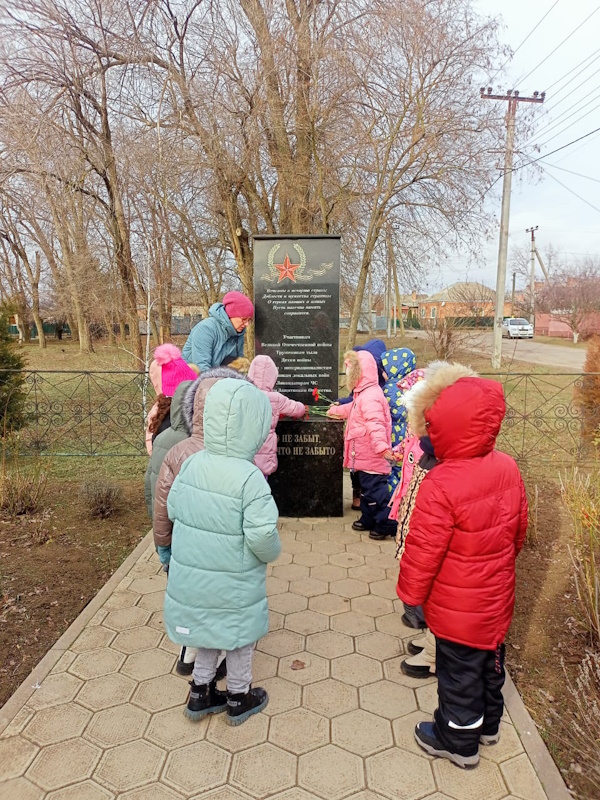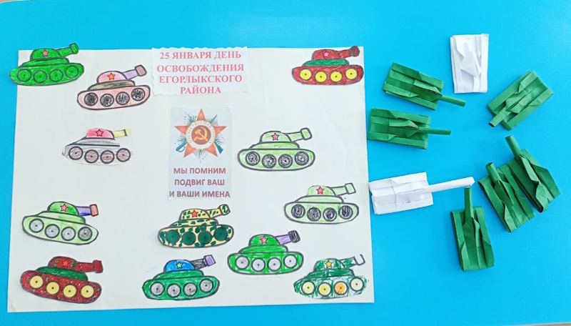 25 января - 82 года со дня освобождения станицы Егорлыкской от немецко-фашистских захватчиков. Каждый год в январские дни мы вспоминаем грозные годы войны, и когда наша станица была освобождена от немецко-фашистских захватчиков. В преддверии этой памятной даты в старшей группе «Непоседы» прошел «День памяти». Мы с детьми посмотрели фильм Егорлыкского краеведческого музея «Освобождение Егорлыкской от немецко-фашистских захватчиков». Изготовили в совместной продуктивной деятельности «Танк» в технике «Оригами», стенгазету «Мы помним подвиг ваш и ваши имена». Дети возложили цветы к памятнику воинам ВОВ и почтили память погибшим минутой молчания.