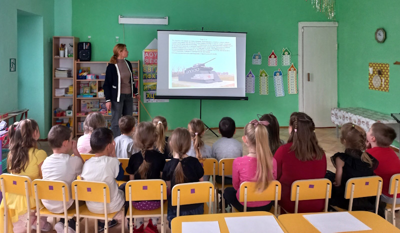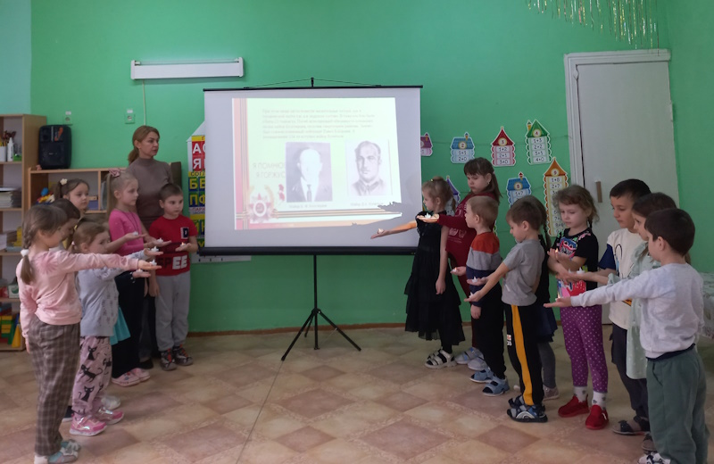 Дети с интересом смотрели презентацию о событиях тех дней, узнали о героях-земляках, в честь которых названы улицы ст. Егорлыкской Белозерцева, Грицика, Дубинец, Кочеткова, Яценко. Также ребята нарисовали рисунки мирной жизни.
