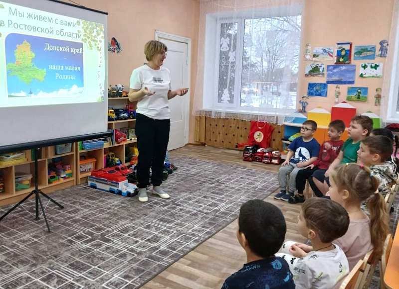 В рамках тематической недели «Моя Родина - Россия» мы с воспитанниками подготовительной группы «Капельки» совершили виртуальную экскурсию по станице Егорлыкской и Ростовской области. Ребята с интересом рассматривали достопримечательности и знакомые объекты. С большим любопытством дошкольники работали с развивающим учебно-наглядным комплексом по патриотическому воспитанию: прослушали гимн Ростовской области, с помощью карты Ростовской области с озвучкой и световой индикацией дети узнали о растительном и животном мире Ростовской области. С удовольствием играли в русскою народную игру «Ручеёк».
