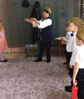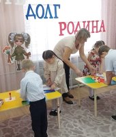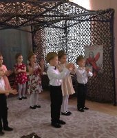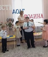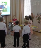 Музыкальный руководитель Ермак Л.В. в рамках патриотического воспитания с подгруппой воспитанников подготовительной группы «Капельки» и при участии воспитателя Локоть Н.Л. продемонстрировали занятие по образовательной области «Художественно-эстетическое развитие» - раздел музыкальное воспитание на тему: «Путешествие в прошлое»