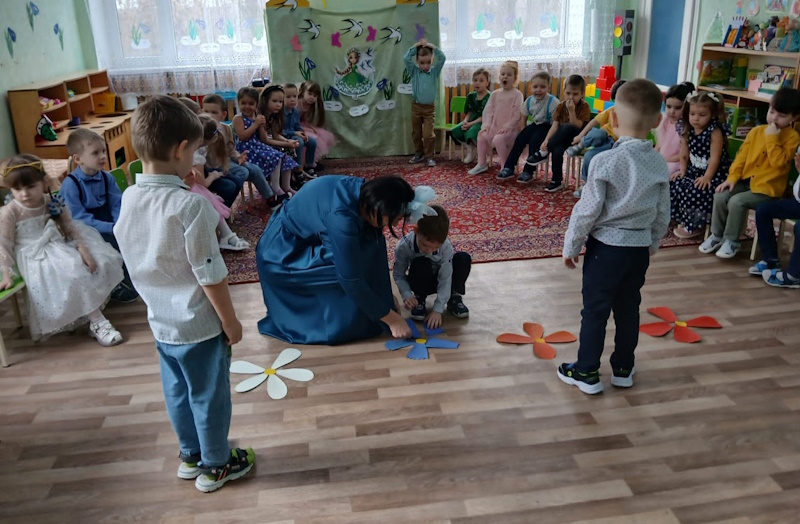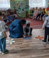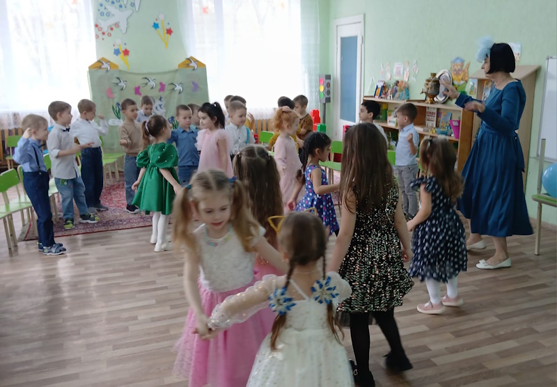 В средней группе «Ягодки» в преддверии праздника Международного женского дня в я провела развлечение: «Веснушка-Конопушка в гостях у ребят». В гости к дошколятам пришла Веснушка-Конопушка (эту роль выполнила я). Сначала гостья рассказала ребятам почему на лице появляются веснушки и загадала весенние загадки. Веснушки-Конопушки поинтересовалась, как ребята готовятся к празднику и предложила стать мамиными помощниками: убрать игрушки после игры, подмести мусор в группе, приготовить продукты для супа и компота. Дети быстро выполнили все задания. Девочки продемонстрировали свои красивые наряды мальчикам, как настоящие модницы. Все вместе танцевали зажигательные танцы: «Расписные ложки» и «Морячка». Все вместе сложили цветы из лепестков для любимых мамочек. В конце развлечения дошколята исполнили зажигательный флешмоб «Озорные малыши».