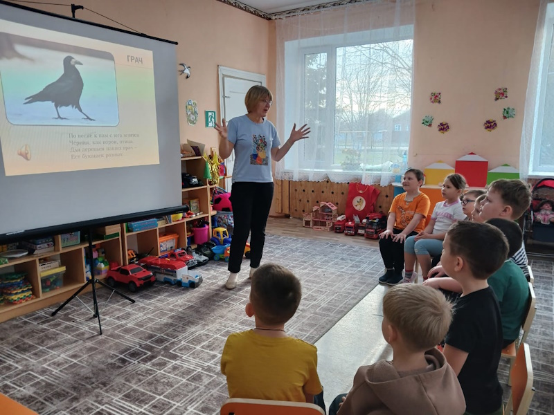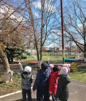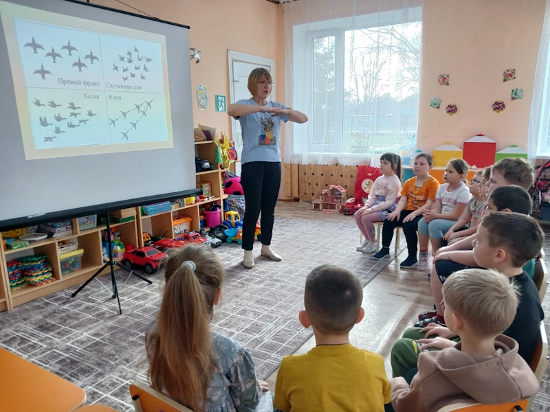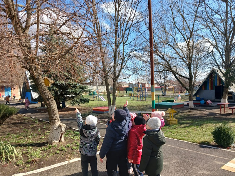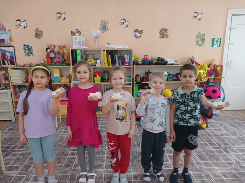В подготовительной группе «Капельки» в рамках тематической недели «Наши пернатые друзья» мы с ребятами беседовали о празднике Сорок сороков, просмотрели презентацию «Перелетные птицы», а в ходе просмотра отгадывали загадки и слушали голоса птиц, которые вернулись в родные края. Затем мы с детьми сделали объемных птиц из бумаги по шаблонам, которых посадили на дерево. Весну зазывали «жаворонушки, прилетите, весну-красну на своих крыльях принесите!». Весело играли в хороводную игру «Гори, гори ясно».