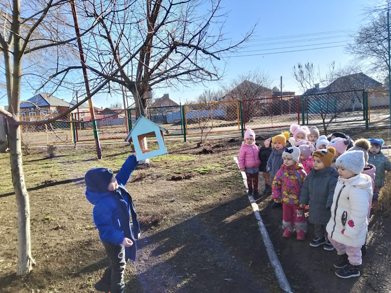 В младшей группе «Звёздочки» прошла тематическая неделя «Пернатые соседи и друзья». На протяжении всей недели мы с детьми беседовали на темы: «Птицы», «Где живут?», «Чем питаются?», «Перелётные птицы» , «Зимующие птицы», «Берегите птиц», читали сказки и рассказы, отгадывали загадки, слушали аудиозапись «Птичьи голоса». Конструировали птиц из геометрических фигур и скворечники для скворцов. Играли в дидактические игры «Собери и назови кто это», «Накорми птичку», подвижные игры: «Кот и воробушки», «Птички в гнёздах», «Совушка сова». На прогулке наблюдали за птицами и пополнили кормушку собранными крошками. Совместно с родителями оформили выставку рисунков и поделок «Пернатые друзья». Очень интересно и познавательно прошла тематическая неделя.