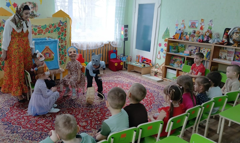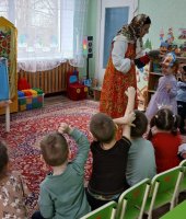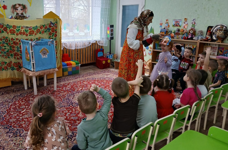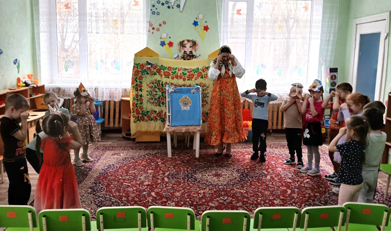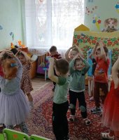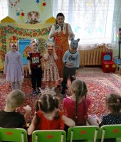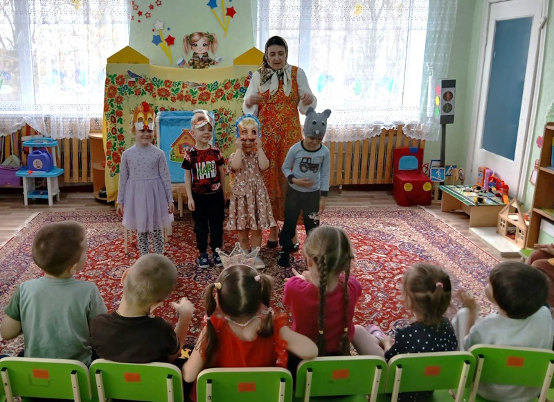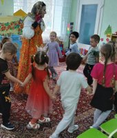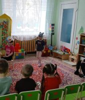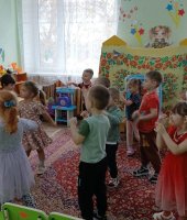 27 марта всемирный день театра. В рамках проекта «Сказка» по театрализованной деятельность в средней группе приуроченной к этой дате я провела квест-игру «В поисках театральных масок». В гости к дошколятам пришла сказочница Аленушка (эту роль выполнила я) и предложила отыскать маски для сказки «Курочка Ряба». Первое испытание было от бабы Яги. Она предложила отгадать ребятам сказочные загадки. Затем дети поиграли в игру «Бабка Ёжка». Потом дошколята сложили сказочные пазлы вместе с бабой и дедом. Следующим испытанием для ребят стало упражнение «Передай эмоции» от курочки Рябы, в котором дети передавали друг другу радость, грусть, страх, испуг. С этим заданием справились все. Малыши собрали все маски для театра и разыграли сказку «Курочка Ряба». Каждый ребенок побывал в роли артиста и зрителя. В конце дошколята исполнили зажигательный танец «Буратино».