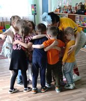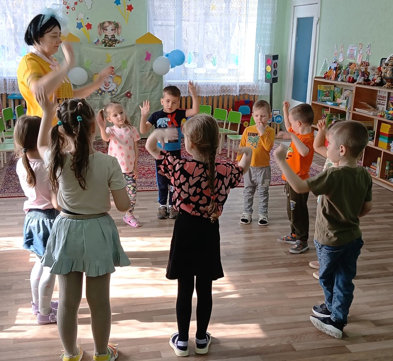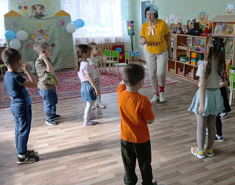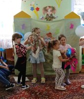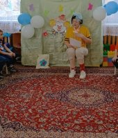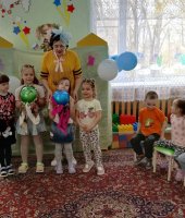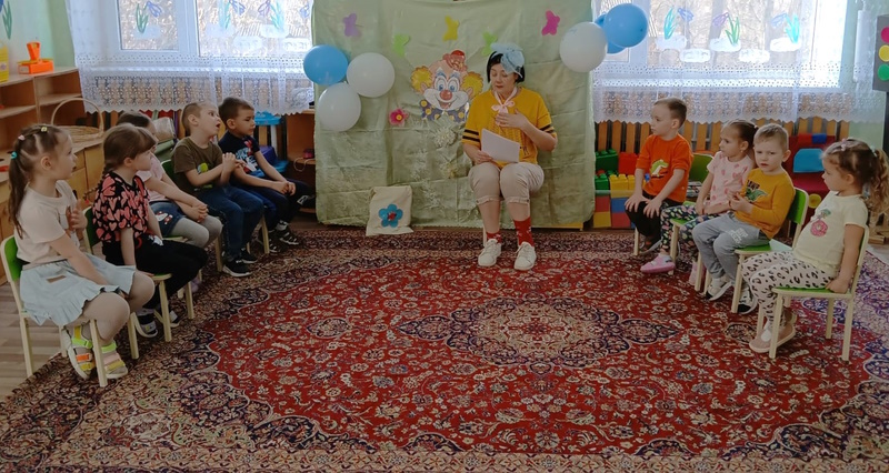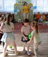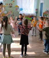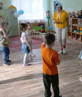 1 апреля день юмора и смеха. В средней группе «Ягодки» мы отметили это событие веселым развлечением «Кнопочка в гостях у ребят». В гости к дошколятам пожаловала клоунесса Кнопочка (эту роль выполнила я) и предложила вместе праздновать день Смеха вместе. Сначала поиграли в игру «Поздороваемся». Ребята здоровались ладошками, ушками, щечками, носиками, локотками, хвостиками и ножками. Затем с азартом сделали Барбарика-зарядку. Старались смеяться громче своих товарищей в ходе игры «Громкий смех». В словесной игре «Да, нет» дошколята проявили внимание и сообразительность, а за правильные ответы гостья хвалила ребят. Вместе с Кнопочкой дети участвовали в эстафетах: «Шляпка клоуна», «Прокати мяч», «Завяжи платок», «Перенесем мяч вместе». А завершилось это мероприятие танцем «Тяв, тяв буги-вуги».