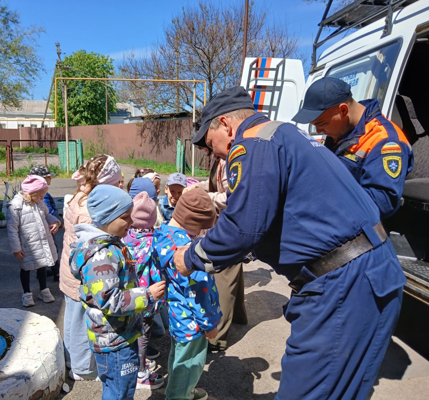 Профессия «спасатель» опасная, но очень важная! Чтобы познакомить ребят группы «Ягодки» с этой профессией, я обратилась за помощью к папе моей воспитанницы Ангелины Кулаковой. К нам в детский сад прибыли спасатели. Наши гости рассказали о важности своей профессии. Ребята с интересом рассматривали атрибуты, которые они используют в своей работе: домкраты, крепежи, аптечка первой медицинской помощи, огнетушители и спасательный круг. Дошколята хором назвали номер службу спасения 112. Затем каждый из них примерил костюм спасателя и шлем. А сколько было восторга у детей, когда они заливали водой воображаемый огонь. Также Виктор Сергеевич и Богдан Сергеевич дали полезные советы малышам, как вести себя на море и реке во время отдыха с родителями. В конце этой встречи каждому ребенку гости вручили значок «Юный спасатель».