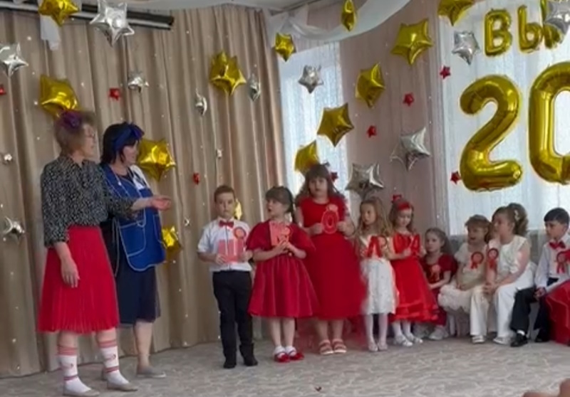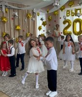 30 мая в подготовительной группе «Ромашка» прошёл выпускной бал, на котором дети простились с детским садом. Выпускники пели песни, читали стихи, в которых звучали слава благодарности всем сотрудникам детского сада, исполняли весёлые танцы и трогательный прощальный вальс. Поздравить выпускников приходили малыши и подарили стихи и зажигательный танец «Лялечка». Пожаловали и нежданные гости Ябеда и Двойка (в роди воспитатели Мамай Н.М. И Локоть Н.Л.). Они приглашали ребят в школу «Бездельников», пытались отговорить детей идти в школу, учили их вредничать, ябедничать и сплетничать. Но наши выпускники пойдут в настоящую школу и будут учиться на четыре и пять.