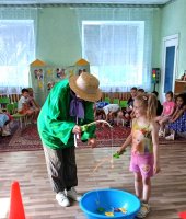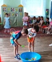 В старшей группе «Ягодки» я провела развлечение «Дружба крепкая». В гости к ребятам пришел кот Леопольд (роль взяла на себя). Леопольд спросил у дошколят, что такое дружба и дружные ли они ребята. Гость предложил дошколятам пройти несложные испытания и проверить, как они дружно выполнят задания. Первое задание от Леопольда «Дружный поезд» - дети выполнили быстро и дружно выстроились в ряд. Затем на веселой рыбалке ребята наловили много рыбы для ухи. Следующим испытанием для дошколят стала эстафета «Собери мячики». Они дружно собрали мячи, которые разбросали мышата. Потом дети разделились на две команды и перетягивали канат, проявив силу, выносливость. Завершилось развлечение веселым танцем «Дружные ребята».