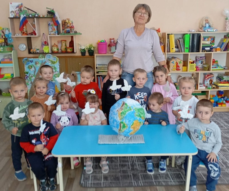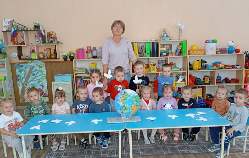 В рамках международного дня мира с детьми младшей группы «Капельки» состоялся серьезный разговор о том, что мир на планете Земля самая большая ценность. Мы обсудили с детьми такие понятия, как война, доброта, дружба. Своё понимание мира и дружбы дети отразили в аппликации «Голубь», так как голубь является символом мира.
