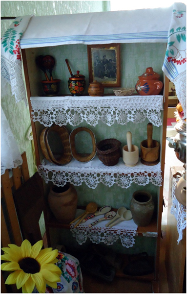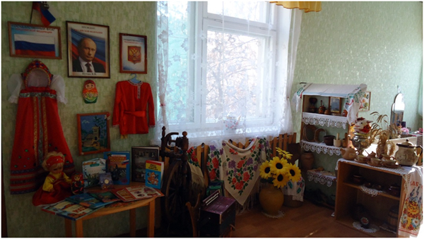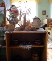 В наши дни дети мало получают информации о русской культуре. Родители реже говорят о культуре нашего народа, его быте в прошлые времена. Совместно с родителями в нашей группе был оформлен мини музей с многообразием предметов домашнего обихода. Где я в совместной деятельности познакомила своих воспитанников с историей и культурой русского народа, с национальным бытом, старинными предметами обихода и их назначением. Насколько велик был интерес детей, когда они увидели в действии прялку, старинную гармошку, ребятам не терпелось попробовать поиграть. Чтобы доставить радость девчонкам, был накрыт стол, как в былые времена. С русским самоваром, деревянной и глиняной, посудой, да расшитыми полотенцами. В музее ребята познакомились со старинным утюгом, весами, лампой, разновидностями крынок и кувшинов, а мальчишек заинтересовали рубанки. И от каждой новой встречи дети получали знания, радость и удовольствие. Именно здесь, для ребенка открывается возможность первого проникновения в историю родного края.