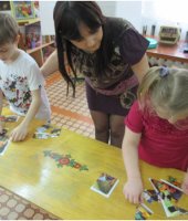 Далее ребята вспоминали, из какой сказки я зачитывала строки, угадывали музыкальные отрывки из оперы «Садко» Н. Римского-Корсакова, в творческом задании участники команд мастерски изображали персонажей сказок, находили лишних героев в конкурсе «Смотрите, кто пришёл», узнавали из каких сказок волшебные предметы в сундучке, а капитаны команд отличились в конкурсе «Кто быстрее соберет картинки» и показали не только ловкость, а ещё аккуратность и старательность. Победила, конечно же дружба, а Золотая рыбка, в конце развлечения, исполнила желание и превратила орешки в сладкие изумруды.