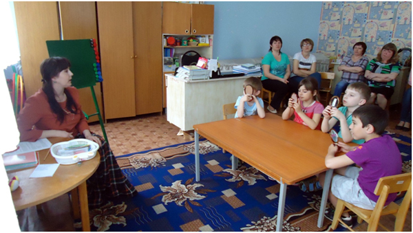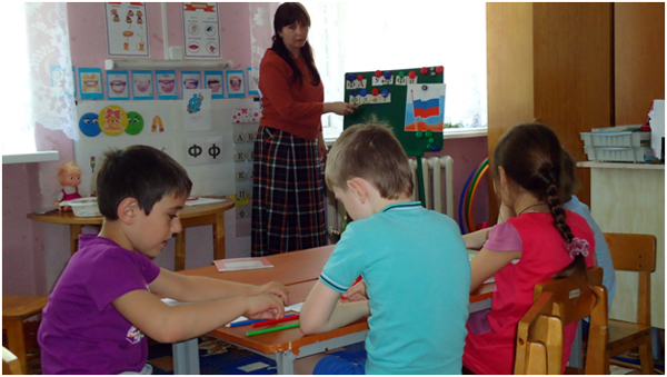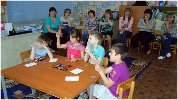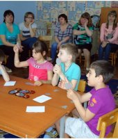 В апреле месяце 2016 года в логопедической группе в подготовительной подгруппе прошёл открытый показ НОД для педагогов ДОУ по обучению грамоте по теме «Звуки [ф] - [ф']. Буква «Ф», с целью совершенствования работы педагогов по применению в работе с детьми разнообразных форм и методов обучения.