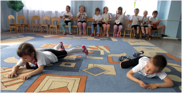 В апреле месяце в логопедической группе прошла тематическая неделя «Удивительный мир природы». В ходе этой недели мы с детьми беседовали о диких и домашних животных, закрепляли правила безопасного поведения в природе. На прогулках наблюдали за насекомыми, птицами на участке, углубили знания о повадках белки, рассматривали весенние цветы на клумбах, наблюдали за овощными культурами на огороде. Итогом недели стал досуг для воспитанников «Зов джунглей», где дети закрепляли знания о животных жарких стран, совершенствовали двигательные умения и навыки. В ходе этого мероприятия воспитанники логопедической группы разделились на две команды: травоядных и хищников. Они выполняли различные препятствия: собирали бананы для обезьян , прыгали с мячом как кенгуру, ползали по-пластунски как крокодилы, прокатывали мяч головой как носороги. В игре «Ловля обезьян» ребята показали свою ловкость, выносливость, сноровку. Каждая команда получала за правильно выполненное задание банан или кость. Дети были очень рады каждому банану или кости.