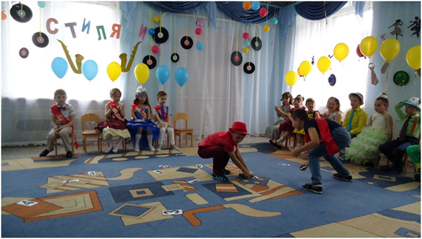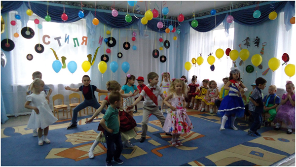 Выпускной в логопедической группе мы решили провести не совсем обычно и нетрадиционно. Мы хотели, что бы наш праздник запомнился всем и надолго, и ни каких слез и грусти, поэтому назвали мы его «Стиляги нашего двора». Все присутствующие аплодисментами встретили дорогих выпускников. Дети зашли в зал и ах… это настоящие стиляжные девочки и мальчики. Ребята в течение всего праздника показывали свои знания и умения, которые приобрели в детском саду. Дети пели песни, рассказывали стихи, продемонстрировали театральное мастерство, исполнили много танцев и конечно же прощальный - дошкольный вальс.