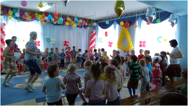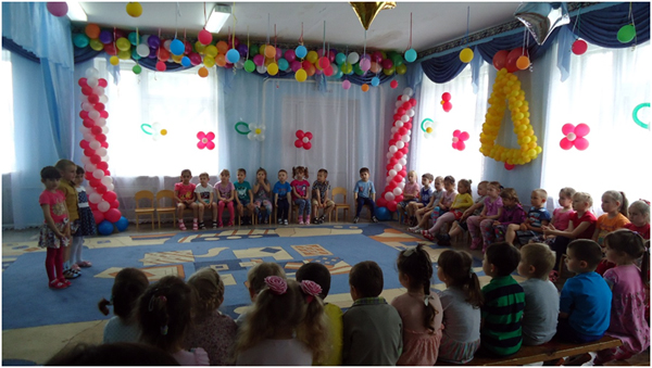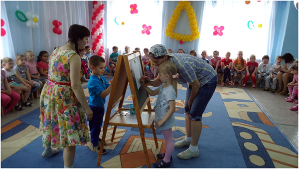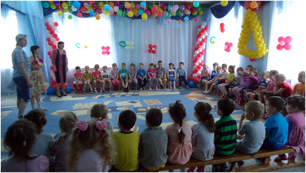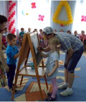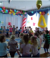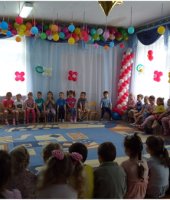 В этом году в не очень солнечный первый летний день мы, взрослые, решили развеселить наших детей – подарить им праздник. Не одно наше мероприятие не обходится без гостей, так и в этот раз к ребятам приходили Веснушка и Кнопочка. Вместе с ребятами они отправились в путешествие по станциям, на которых их ждали задания в виде весёлых песен и зажигательных танцев, игр подвижных и интеллектуальных, «загадочных» загадок, весёлых соревнований, «рисовальных» конкурсов. Это было не просто путешествия. На каждой станции детей ждали звёздочки. Так, не заметно для себя ребята кроме веселья выполняли с большим энтузиазмом и задания. И если все справлялись, то звёздочка переходила к детям. Так, по «возвращении домой», у каждой группы было по пять звёзд. Конечно, звёзды хорошо, а вот вкусный сюрприз лучше. Когда дети вернулись в свои группы, их ждали «волшебные» яблоки, которые ребята с удовольствием съели.