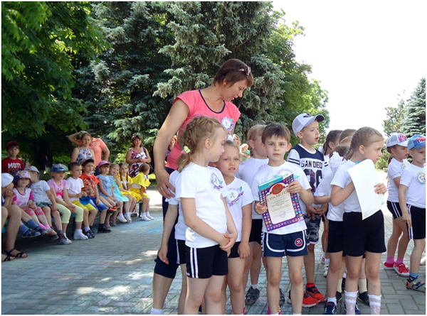 17 июня для воспитанников детских садов был проведен спортивный праздник «Солнышко лучистое, в гости приходи!». В соревнованиях приняли участие команды различных детских учреждений. От нашего детского сада выступала команда из воспитанников подготовительной группы под названием «Светлячки». Команда представила себя дружной речёвкой.