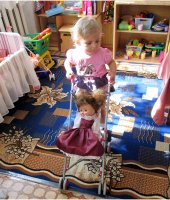 В группе раннего возраста «Ягодка» прошёл адаптационный период. В ходе этого периода дети знакомились друг с другом, учились ориентироваться по группе, в игровой форме формировала у них навыки самообслуживания, обучала игровым действиям с куклой. А так же в данный период проводила с дошколятами игры «Тонет, не тонет», «Разноцветные полянки», «Положи в ведёрко», «Большой маленький», «Пирамидка», «Одень колечко». Познакомила детей с потешками «Сорока-воровка», «Ладушки-ладушки», «Пошёл котик на торжок», «Наши уточки с утра».