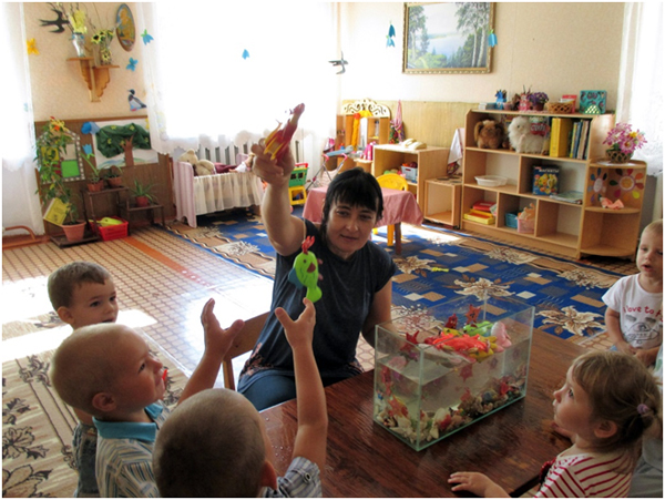 Ребенок должен увидеть в воспитателе доброго, всегда готового прийти на помощь человека (как мама) и интересного партнера в игре. Эмоциональное общение возникает на основе совместных действий, сопровождаемых улыбкой, ласковой интонацией, проявлением заботы к каждому малышу.