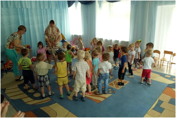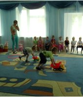 Игрушка для ребенка – это первая «примерка» мира. В играх малыш выражает свои чувства к маме с папой, окружающим его людям и самому себе, и учится узнавать этот сложный и пока непонятный ему мир. Поэтому у нас в детском саду № 33 «Светлячок» в августе месяце была проведена тематическая неделя посвященная игрушкам и играм. На которой я с детьми младшей группы беседовала на темы: «Любимая игрушка», «Как надо заботиться об игрушках», «Где делают игрушки», с целью познакомить детей с понятием «игрушки», расширить представление об игрушках, вызвать интерес и желание играть с игрушками, использовать игрушку по назначению. Рассматривала с младшими дошкольниками иллюстрации с изображением игрушек, с целью развивать речевую активность детей. Разучивала с детьми стихотворения А. Барто из цикла «Игрушки», с целью развития памяти и речи детей. Разгадывали загадки об игрушках, с целью закрепления название игрушек. В совместной деятельности лепили игрушку «Мяч», целью закрепить приемы лепки, закрепить форму мяча. А обобщением недели послужило развлечение для детей «Путешествие в страну игрушек». На праздник к детям пришла бабушка Загадушка, которая рассказала ребятам об игрушках прошлого времени, загадала детям загадки об игрушках, провела игру «Здравствуй, дедушка Мазай». Затем дети с большим интересом рассказывали друг другу о своих любимых игрушках. Мальчишки смогли посоревноваться в быстроте катания машин, девочки укладывали своих кукол спать, при этом напевали им колыбельные. Очень весело ребятишки танцевали танец «Маленьких утят». А в конце праздника наша гостья Бабушка Загадушка наградила маленьких путешественников отличительными знаками за смекалку, быстроту, вокал, активное участие в конкурсах. Игровая программа «Путешествие в страну игрушек» помогла детям еще раз окунуться в мир игры.