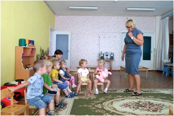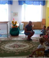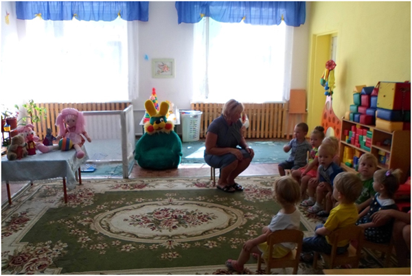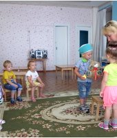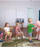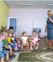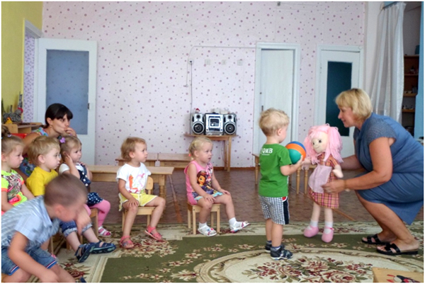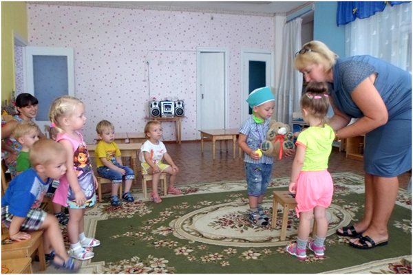 С целью создания радостной, весёлой атмосферы, развития двигательной активности, в августе месяце 2016 года в группе раннего возраста «Полянка» я провела развлечение на тему: «Мои любимые игрушки». Дети попали в чудесную страну игрушек, в ней они встретили бурого медведя, игривую лошадку и куклу Таню. Сначала прозвучало стихотворение «Уронили Мишку на пол», потом детьми была обыграна сюжетно-ролевая игра «Полечим Мишке лапу». Переодевшись в доктора, Ульян Девянин и Маргарита Кравцова смазывали Мишке лапу. Дети поиграли с Мишкой в игру «Вышел Мишка из берлоги». После прочтения стихотворения «Я люблю свою лошадку», ребята расчёсывали гриву лошадке и вместе с ней исполнили подскоки с продвижением вперёд. На празднике дети показывали Бычку, как надо держать равновесие, чтобы не упасть, успокаивали куклу Таню и играли с ней в подвижную игру «Раз, два прыгай мячик».
