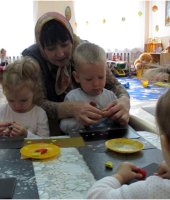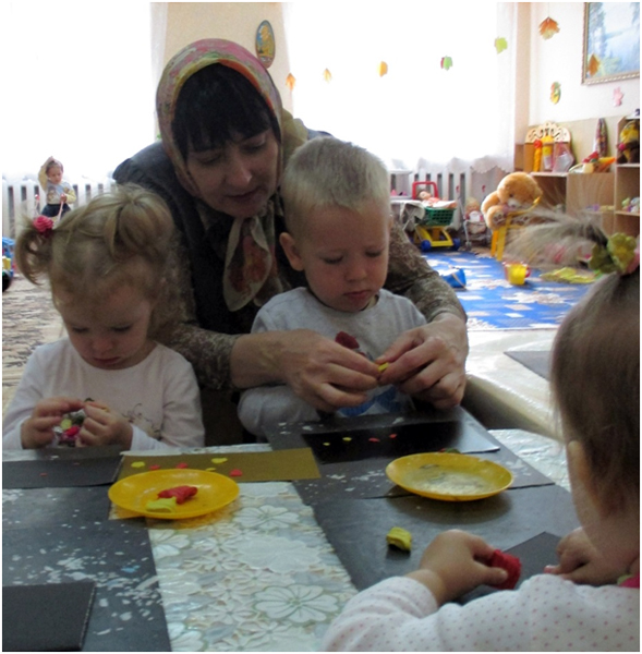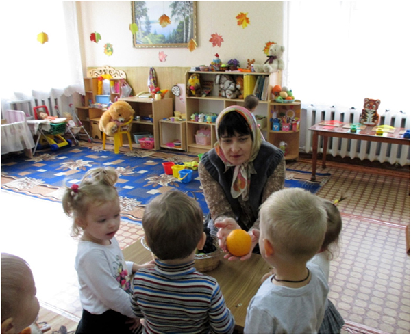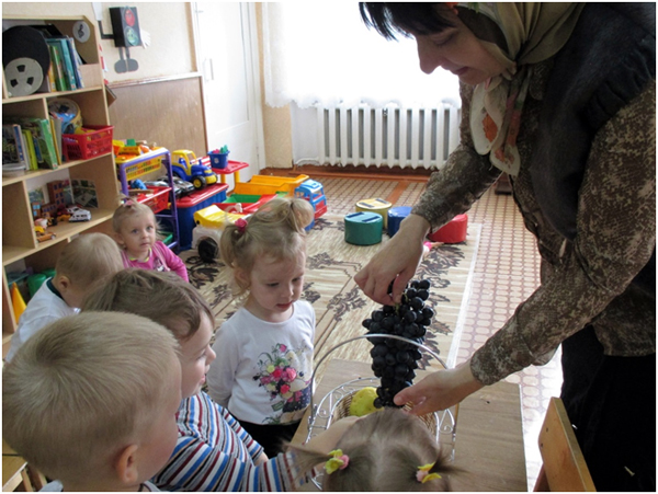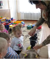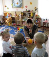 В группе раннего возраста «Ягодка» прошла неделя «Ребёнок и его здоровье» (дары осени). В ходе этой недели мы с детьми рассматривали муляжи овощей и фруктов. Обогатили знания о полезных свойствах витаминов, которые содержатся в них. Выяснили с детьми, что овощи растут на огороде, а фрукты в саду. Итогом недели стало развлечение «Бабушка Арина в гости к нам пришла». Бабушка Арина принесла корзинку с осенними подарками. Ребята рассмотрели фрукты из корзинки. Поиграли в игру «Угадай на ощупь», «Собираем урожай», «Угадай на вкус», также поиграли пальчиковую гимнастику «Мы делили апельсин». В конце развлечения ребята слепили яблочки.