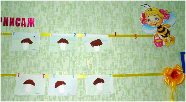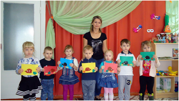 В соответствии с учебным планом работы на 2016-17 год в младшей дошкольной группе в совместной деятельности с детьми ведется кружок по художественно-эстетическому развитию «Мастерилки». В кружке используются нетрадиционные методы рисования, такие как: рисование ладошкой, пальчиками, тычками, обрывная аппликация и пластилинография. Работа кружка направлена на развитие у детей творческих способностей, фантазии, воображения средствами нетрадиционного рисования, а также поможет развить у детей такие психические процессы как: внимание, мышление, память, речь, воображение. Каждое занятие это маленькое приключение для ребят, увлекательное и интересное. Вот такие творческие работы были выполнены воспитанниками в октябре месяце: «Желтые листья летят», «Огуречик, огуречик», «Гриб боровичок», «Ежик листьями шуршит».