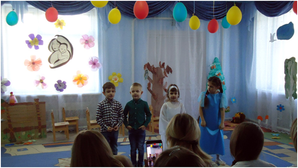 24 ноября в нашем детском саду мы провели праздничное мероприятие, посвящённое нашим самым любимым, самым дорогим на свете людям – нашим мамам. И, хотя, этот праздник мы отмечаем в конце осени и за окном дождь и слякоть, этот день согревает нас своим душевным теплом, потому и назвали мы его «Осень провожаем – мам поздравляем». В этом году у нас было много гостей. Дети из средней и старшей групп выступили перед мамами с песнями, частушками (какой же праздник без них), стихами, на праздник даже прилетали маленькие ангелочки. А ребята из подготовительной группы показали музыкальную сказку «Как коза избушку построила». Выступление детей получилось таким трогательным, что невольно у зрителей, да и участников на глаза наворачивались слёзы. И, хотя нам всем взгрустнулось, но, всё же, грусть эта была светлой.