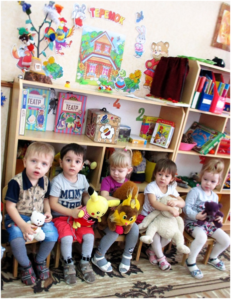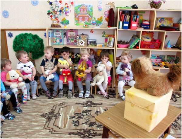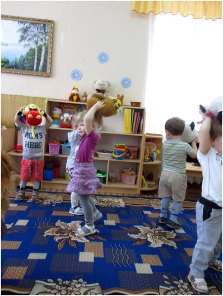 В группе раннего возраста «Ягодка» в ноябре прошла неделя « Любимые игрушки». На этой неделе мы с детьми разучивали стихи об игрушках, учились составлять описательный рассказ об игрушке, рассматривали игрушки в групповой комнате, выполняли игровые действия с куклами: укладывали спать, кормили обедом, собирали на прогулку, катали на машине. Итогом недели стало развлечение по теме «Любимые игрушки». В ходе этого развлечения я решала следующие задачи: содействовать формированию навыкам коммуникативного общения; знакомству с элементарными правилами поведения, этикой приветствия и общения; развитию речи детей; вызывать радость от совместной деятельности. Сюрпризным моментом стала красивая коробка. Из этой коробки сначала достали собачку спели песню про собачку. Потом извлекли куклу, так как все дети принесли из дома сою любимую игрушку, все любовались игрушками и кукла Катя пригласила всех на весёлый танец «Танец с любимой игрушкой», с разноцветным мячиком по играли в игру «Разноцветные мячик», все вместе рассказали стихотворение о мячике, в конце развлечения дети исполнили упражнение с лентами. У всех было радостное и хорошее настроение.