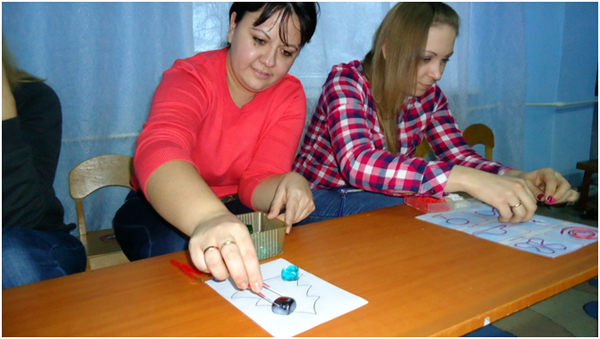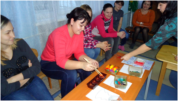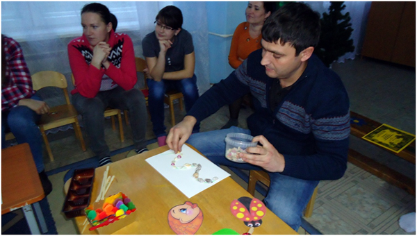 1 декабря 2016 года я провела мастер-класс для семей воспитанников старшей разновозрастной группы на тему «Формирование речевых навыков посредством использования нетрадиционных пальчиковых игр», с целью повысить компетентность родителей в вопросах речевого развития ребенка, а также объяснить необходимость выполнения упражнений по развитию мелкой моторики рук и дать рекомендации к проведению нетрадиционных пальчиковых игр. Для мастер-класса была организована выставка литературы по теме «Развитие мелкой моторики у детей дошкольного возраста» и дидактических пособий для развития мелкой моторики.