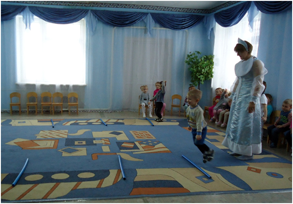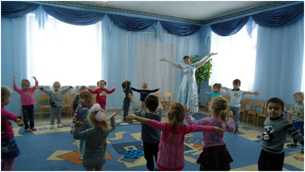 Зимушка предложила детям соревнования по меткости « Попади в цель», перепрыгнуть через замершую лужицу «Кто дальше?», загадала загадки о зиме, поиграла с ними в игру « Заморожу», станцевала «Танец снежинок». А ребята смогли рассказать стихи Зимушке о предстоящем празднике Новом годе.