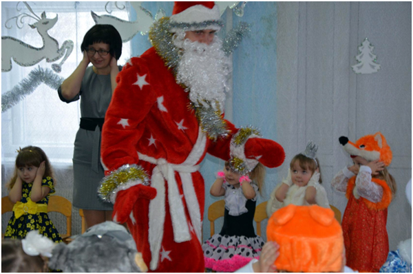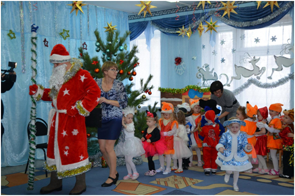 Вот мы в нашем детском саду «Светлячок» подготовились к празднованию «Новогоднего приключения». Ребята младшей группы выучили стихи, которые будут рассказывать главному герою торжества Деду Морозу, нарядили елку красавицу и пели ей новогодние песенки. Наконец, настал день праздника. Ребята ждали друг друга в группе, чтобы похвастаться новогодними костюмами. А затем всех пригласили в зал, где стояла настоящая живая украшенная елка. Дети весело спели песенку «Наша елочка красавица», а затем при помощи волшебства игрушечного Деда Мороза превратили его в настоящего, который пригласил всех желающих отправиться в новогоднее сказочное путешествие. Ребята станцевали плясовую с Дедом Морозом, расколдовали Снегурочку и поиграли с ней в игру «Где же ваши погремушки?». Дети с большим интересом наблюдали за Бабой Ягой, которая пела и плясала для детей. Они не испугались её, а наоборот порадовали Бабку Ёшку задорным танцем «Чок да чок». Но как бы хорошо не было в гостях, надо возвращаться домой. Вот и мы с детьми вернулись с путешествия в детский сад, где нас ждали новогодние сюрпризы.