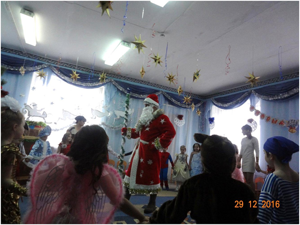 Новый год самый любимый и долгожданный праздник для детей. Это чудеса, исполнение желаний, но и конечно же сказка. Дети старшей разновозрастной группы «Гномики» в этот день и попали в Новогоднюю сказку. Встретив на пути Ёлочку, дети водили хоровод и пели песни. Повстречав Лешего Кикимору не испугались, а даже сочиняли стихи и вместе с ними играли. Очень удивились колдовству Кикиморы и Лешего, когда они Деда Мороза напоили волшебной водой и превратили в маленького, а потом наоборот. Вытаскивали Деда Мороза с помощью волшебной веревки из сугроба, пели ему песни, играли в игры, рассказывали стихи. Снежинки подружки Снегурочки, Гномики и куклы танцевали для Дедушки Мороза и удивляли его своим мастерством. Разбойники пытались заворожить своим танцем, и это у них получилось, Кикимора даже пустилась вместе с ними в пляс. Весёлые ложкари сыграли так на музыкальных инструментах, что Леший, взявшись за ложки вмести сними начал играть. Было очень весело и интересно. Кикимора и Леший нашли под ёлкой старое бревно и решили его распилить, а в нем оказались подарки от Деда Мороза. Они хотели подарки поделить и забрать себе, но Дед Мороз и Снегурочка их не отдали, а приказали раздать детям. Но и Кикимору и Лешего Дедушка Мороз и Снегурочка не оставили без подарков, они подарили Кикиморе красный красивый бант, а Лешему замечательную синюю шляпу. Попрощавшись с Дедом Морозом и Снегурочкой мы отправились из сказки к себе в группу получив массу приятных радостных впечатлений, исполнений желаний и чудес.